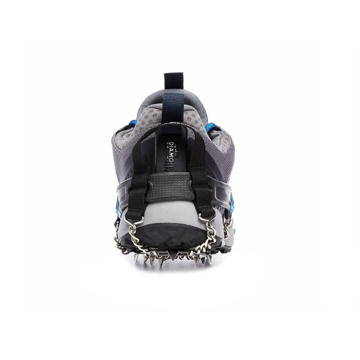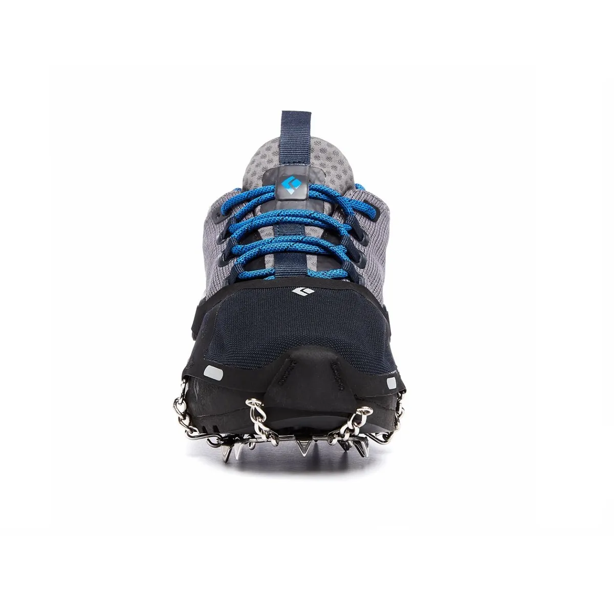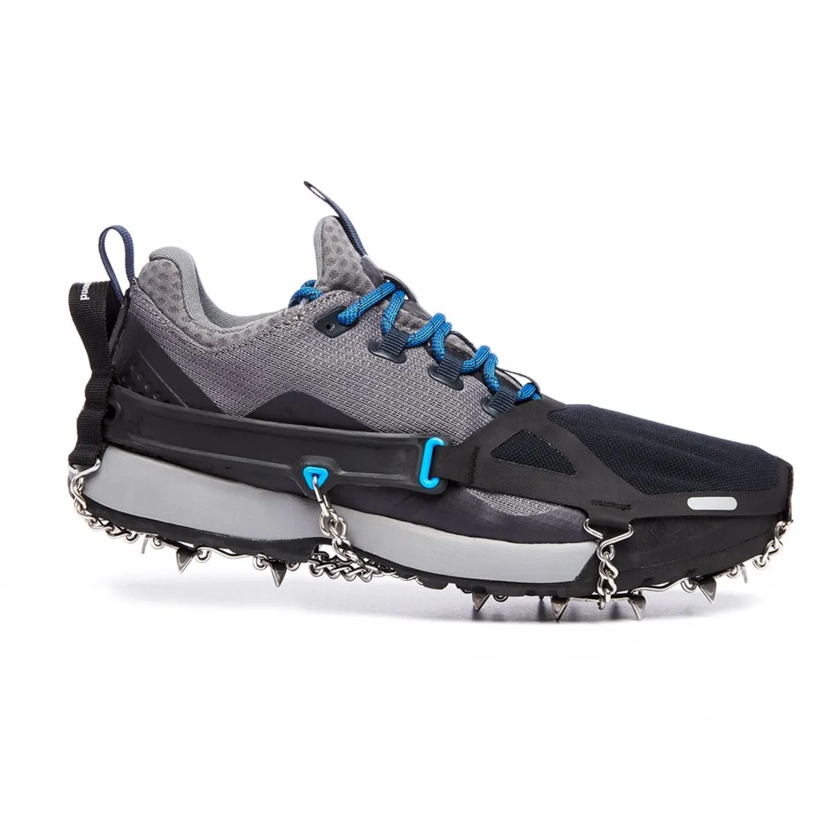 - 14 puntas de acero inoxidable tratadas térmicamente con una longitud optimizada de 8 mm brindan una tracción superior en terrenos variados con nieve y hielo al tiempo que mantienen la estabilidad bajo los pies en rocas y superficies duras