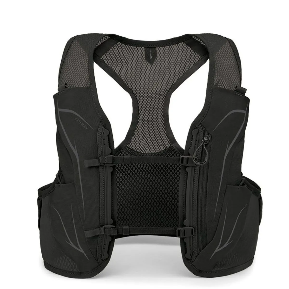 - El bolsillo inteligente mantiene los elementos esenciales, como agua, geles, silbato y teléfono, accesibles durante el camino.
