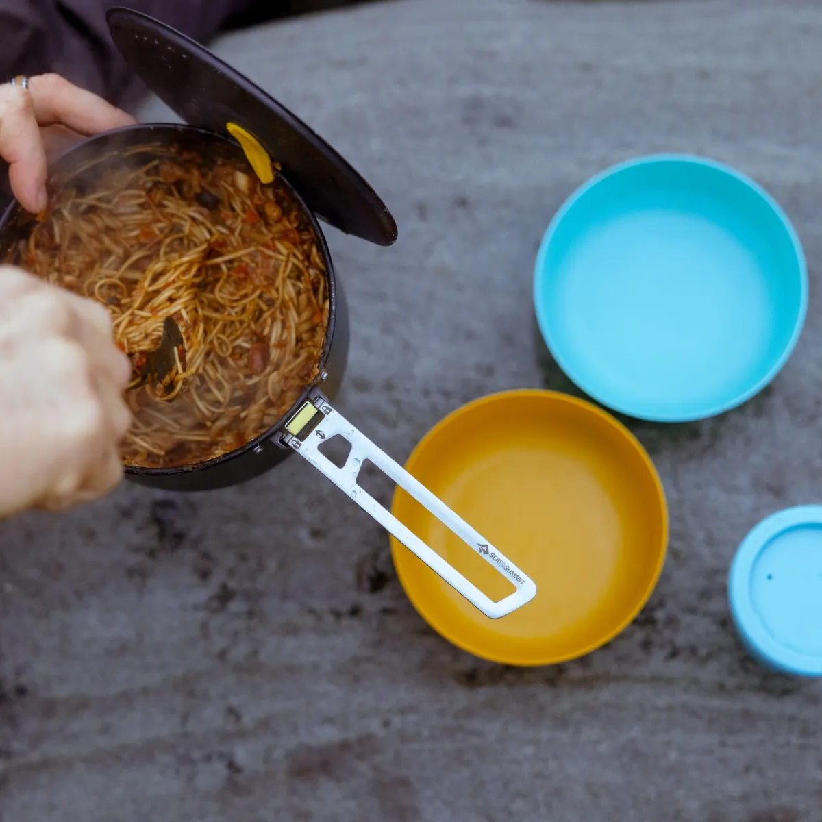 La curva entre la pared lateral y la base combina perfectamente con las cucharas y tenedores Sea to Summit