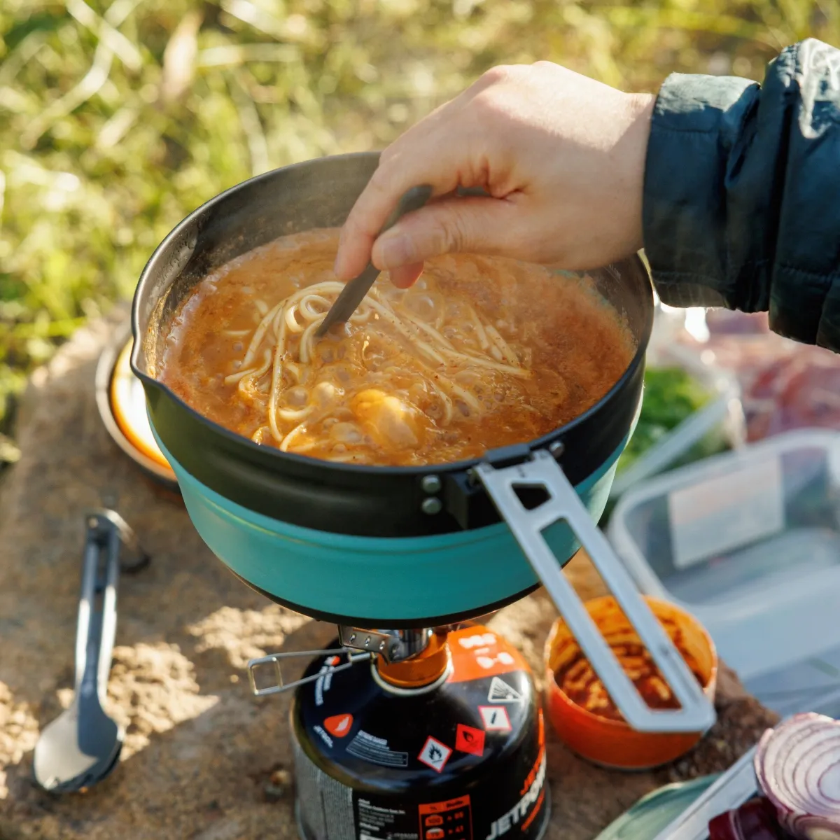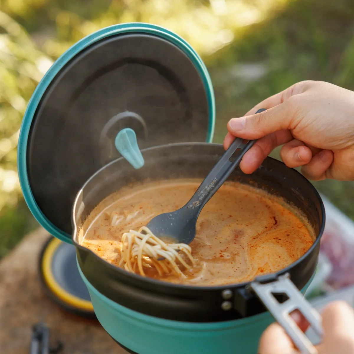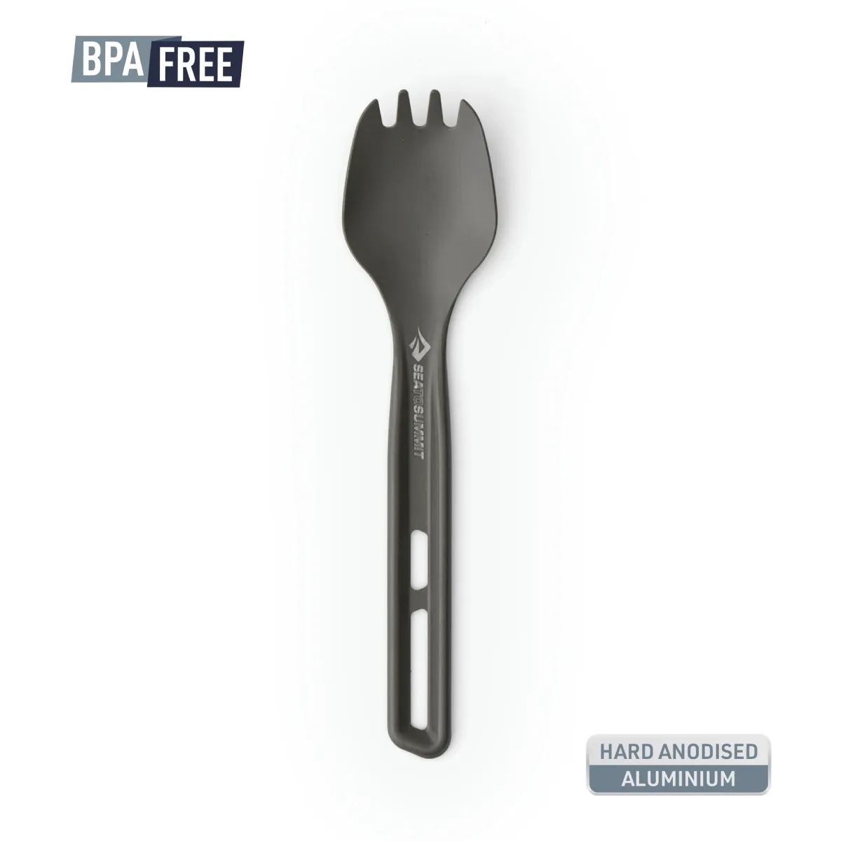 - Cuchara-tenedor ligera pero resistente, fabricada en aluminio anodizado duro de calidad aeronáutica