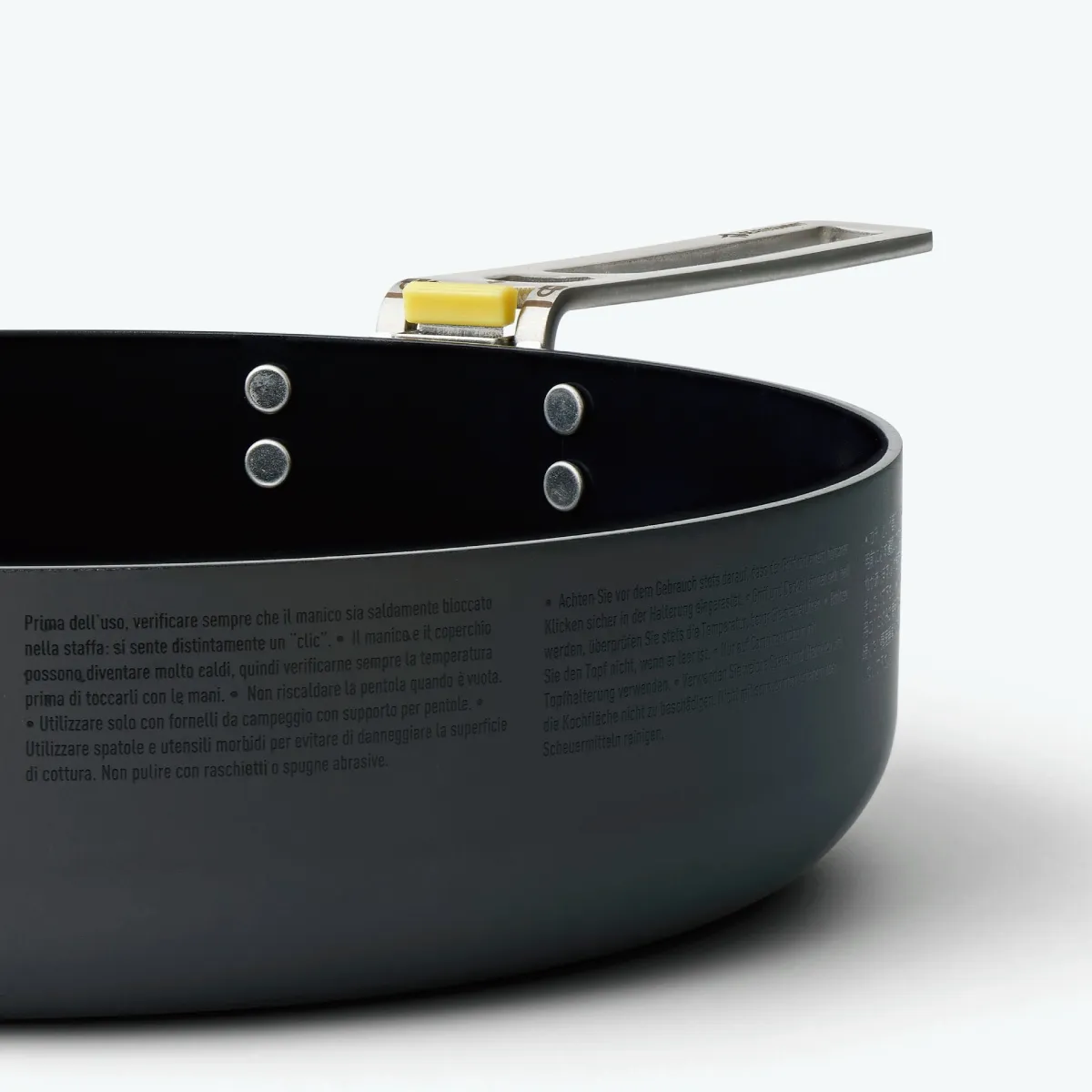 - El gran radio entre la base y las paredes laterales facilita girar y voltear los alimentos.