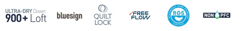 - luma de ganso 900+ Loft, certificada RDS y tratada con Ultra-Dry Down™ libre de PFC, para máxima aislación incluso en condiciones húmedas.