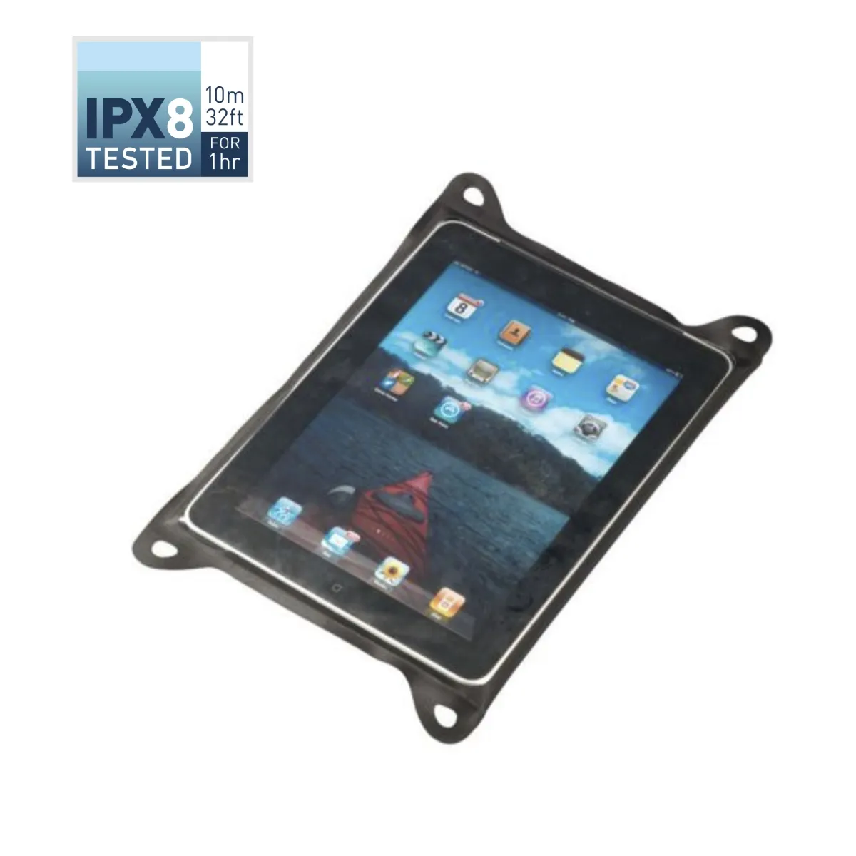 Construido con materiales de vanguardia y un exquisito diseño de bajo perfil, el estuche impermeable TPU Guide para tabletas mantendrá las tabletas secas y protegidas de los elementos. La entrada de la bolsa utiliza un sistema dual que incorpora un cierre de cremallera resistente al agua y un cierre superior enrollable 4x asegurado con doble gancho y bucle. Esto es mucho más libre de errores y confiable que solo un cierre tipo zip lock. La ventana del tamaño de una pantalla hecha de poliuretano termoplástico (TPU) le permite al usuario operar la computadora a través del tacto incluso cuando está sellada en la bolsa. Cuenta con una gran ventana transparente en el panel posterior para acomodar varias ubicaciones de cámara de diferentes modelos.