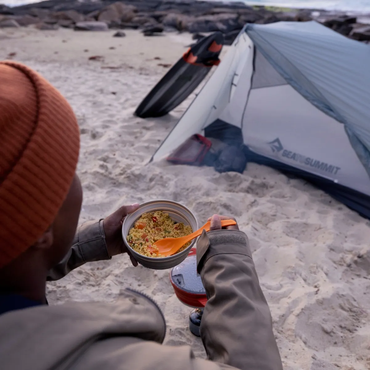 Tanto Delta Spoon como Spork han sido diseñados con un cuchillo separador integrado con un filo fuerte. El perfil de la cuchara ha sido diseñado ergonómicamente para mayor comodidad y coincide perfectamente con la curvatura de la pared lateral de 20 ° del Delta Bowl y la Placa.